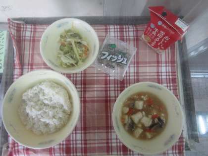 今日の給食「鶏肉ととうふのくず煮」は、具だくさんでとろみもあり、おいしくいただきました。「ごま酢煮」はさっぱりとした味つけで食べやすくおいしかったです。ごちそうさまでした。