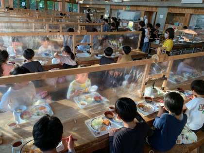 昼のプログラムをすべて終え、夕食をとっています。