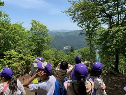 頂上から御苑が見えるということで、京極小学校の屋上から鏡をキラキラさせて見ようと思います!