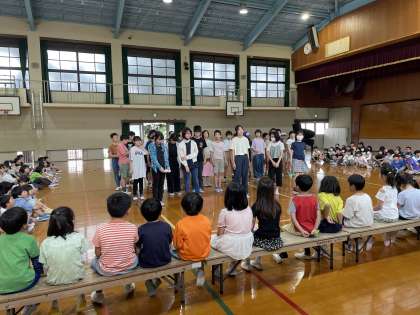 6年生の子どもたちは、1年生の子たちへお祝いの気持ちと大事にしてほしいことをテーマに劇をしました。