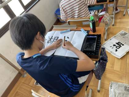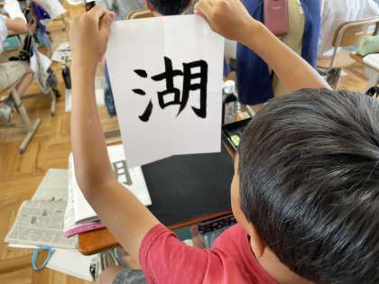 6年生の書写の学習で「湖」を書いています。