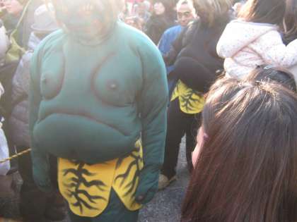 鬼が出てくるや、とても元気になり、「頭をなでてもらった!」「お腹さわれた!」 とおおはしゃぎでした。見えない子にはとなりにいた人たちが子どもたちをおぶってくれたりもしました。