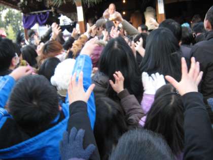 豆まきまで長い時間待ったことや想像以上の人の多さで、子どもたちも疲れを見せていました。