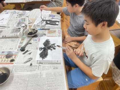 普段は書写の学習で使用する、墨と筆。今日はそれを使って絵をかきました。