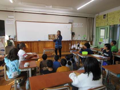 今日の読み聞かせは、秋の季節にぴったりのお話や「自分にとって一番何が大切なのか?」を考えさせられるようなお話でした。高学年の子どもたちは、最後まで集中してお話を聞いていました。また、ご家庭で「どんなお話だったの?」と尋ねてみてください。かしの木のみなさん、今日もありがとうございました。