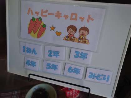 そして今日はハッピーキャロットの日でした。シチューの中に型抜きにんじんがいくつか入っていました。にんじんが入っていた子は大喜びしていましたよ。何かいいことありますように。