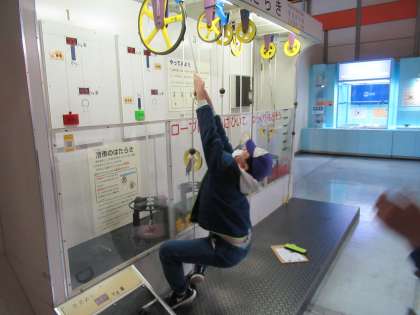 そのあとは展示コーナーを見学しました。鏡や光の性質、地震のメカニズムや化石など楽しく学習できました。