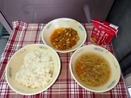今日はドライカレーの具に、大豆とツナを使いました。カレーの具にいろいろなものを入れて楽しむのと同様に、ドライカレーでもいろいろな具を入れて味を楽しむことができるようです。農林水産省のホームページで見つけたおいしそうな一品です。