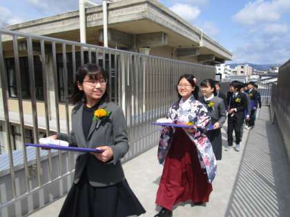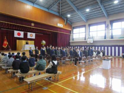 清々しい天候のもと、令和5年度卒業証書授与式が行われました。6年生児童が卒業証書を受け取り、最後まで立派な姿で式に臨みました。5年生も児童代表として式に参列し、6年生に向けての言葉と歌を送りました。式の後は、教室で担任とのお別れをし、保護者や教職員が見送る中、京極小学校を巣立っていきました。中学校に行っても自分の目標に向かって進んでいってください。