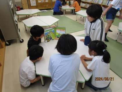 今日の昼休みに今年度初めてのたてわり遊びがありました。図書館では、1ページごとに役割分担をして同じグループの1年生に読み聞かせをしたり、体育館ではバスケットボールをしたりと楽しく遊んでいました。
