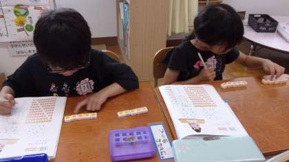 算数では、10がいくつといくつに分かれるのかをブロックを動かしながら確認しました。タブレットを使って、絵をかいて、動かすことにも挑戦しました。もっと、やってみたかったようで、次のタブレットの時間が楽しみですね。