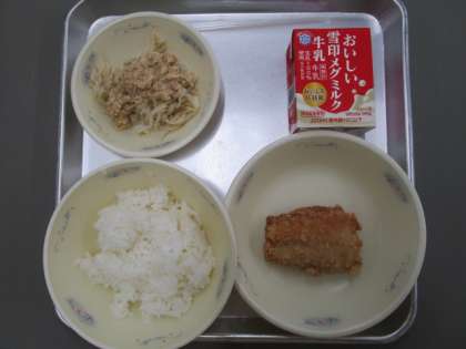 今日の給食「野菜のささみごまだれがけ」は、新献立で切干大根・もやし・旬のきゅうりを炒めたものに、ささみとすりごま・みそ・さとう・みりん・料理酒・米酢・しょうがを合わせて作ったごまだれをかけていただきました。暑い日にぴったりで、とてもおいしかったです。ごちそうさまでした。