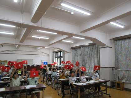 昨日、5年生は、『つながる!NHKメディアリテラシー教室』に参加しました。京極校を含む4つの他府県の小学校とリモートでつながり、学校紹介をしたり、「町のケーキ屋さん」の魅力の伝え方について話し合ったりしました。代表児童はしっかりと京極小学校のよさを紹介することができました。また他の児童も、考えを発表したり、質問に答えたりと意欲的に参加していました。