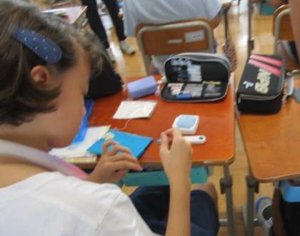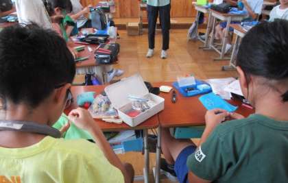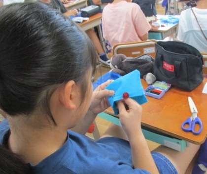 今日の家庭科の学習でフェルトを使って小物づくりをしました。ペンケースやティッシュケースなど工夫をして作っています。来週は作品を発表し合う予定です。