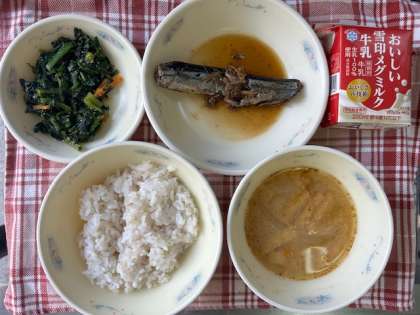 今日の献立「さんまのしょうが煮」のサンマは、漢字では「秋刀魚」と書くように、秋が旬の魚です。脂がのって、ジューシーでとろけるような口当たりです。塩焼きにされることが多いのですが、給食では、しょうがと一緒に煮ています。ごはんによく合う味付けなので、子どもたちも大好きです。