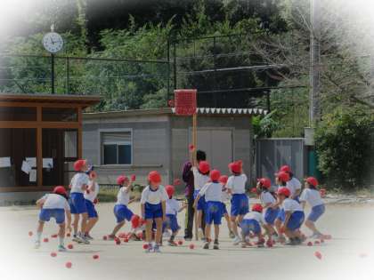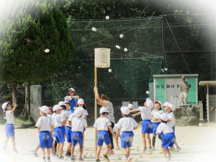 運動場でしました。はじめて、玉入れにも挑戦しました。