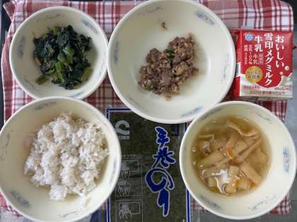 ご飯と肉みそ納豆をのりで巻いて手巻きおにぎりにして食べました。