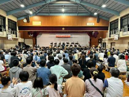 秋を感じる涼しい夕暮れのひと時、素敵な演奏を聴こうと地域の皆さん、京極小学校の児童のみなさん、保護者の方々、卒業生のみなさん、他にもたくさんの方々が集まってくださいました。心を一つにしたすばらしい演奏です。上京中学校吹奏楽部の皆さん、素敵な演奏を引き続きよろしくお願いいたします。