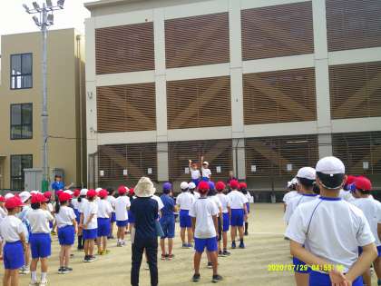 続いて、開会式と閉会式の練習です。校歌や選手宣誓、ラジオ体操などを練習しました。