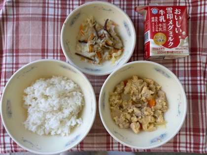 「ごま酢煮」は名前のとおり、ごまと酢を使って味付けをしている献立です。お酢のやさしい酸味とごまの香ばしさがごはんにもよく合います。キャベツやにんじん・細切こんぶのシャキシャキとした歯ごたえも楽しむことができます。