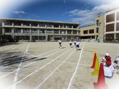 来週の天気予報では、雨だったので、50メートル走を走りました。50メートル走も子どもたちが紹介します。まっすぐ気持ちよく走り切っていましたね。