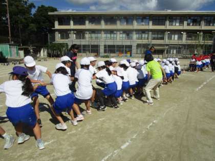 今日の2時間目にSports Open Dayに向けて全校練習をしました。開会式では準備体操や選手宣誓などをしました。その後、綱引きの練習をしました。赤、白、とてもいい勝負でした。本番が楽しみですね。