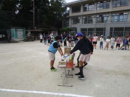 今日のたてわり遊びは、Sports Open Dayの午後にある6年生によるイベント「スポーツん」の種目の1つ「借り物競争」の練習をしました。今日は、みどり、4、5、6年生が走り、1、2、3年生がお客さん役をしました。当日が楽しみですね。