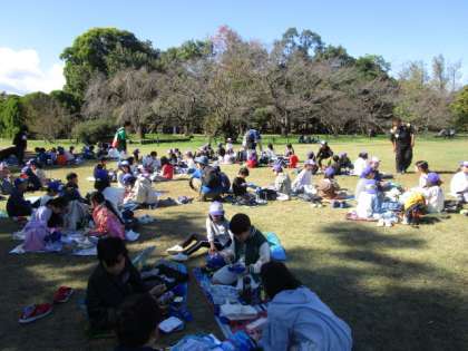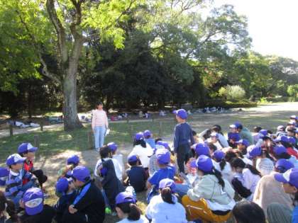 今日は延期になっていたふれあい探索で植物園に行きました。まずは、全校児童が運動場に集まり、出発式を行いました。その後、たてわりグループで歩き、ふれあい探索ラリーをしました。全部クリアできたグループから大芝生で遊んで他のグループを待っていました。待ちに待ったお弁当タイムではグループごとに集まっておいしくいただきました。今日は良い天気の中、楽しい1日になりました。保護者の皆様にはお弁当のご協力をありがとうございました。