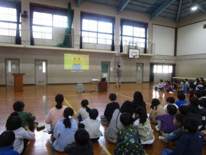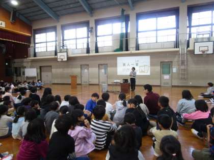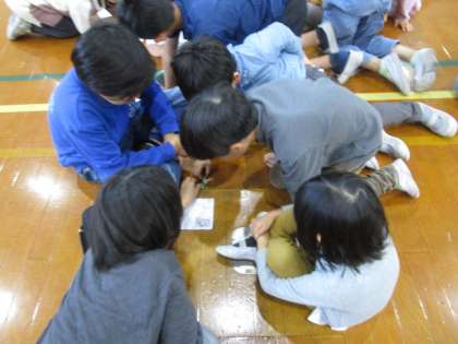 今日の1校時にぽかぽか朝会がありました。最初に校長先生から11月1日の古典の日にちなんで、百人一首の話がありました。その後、今回のテーマは「情報モラル」で、動画を見て、たてわりグループで話し合いました。「メールの言葉だけでは誤解があるので、相手とのやりとりは、直接会って話をする」や、「こちらもごめんと謝ればいい。」という意見が出ていました。相手のことを思いやる気持ちが大切なことを再確認できました。