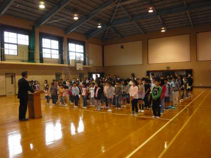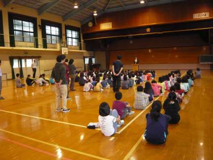 5月15日(火)始業前に,体育館で5月の「朝会」がありました。5月は「憲法月間」ということで,この日の「朝会」では,校長先生から「憲法月間」にちなんだお話や,学校のきまりを守ることの大切さのお話があり,子どもたちは真剣に校長先生のお話に耳を傾けていました。