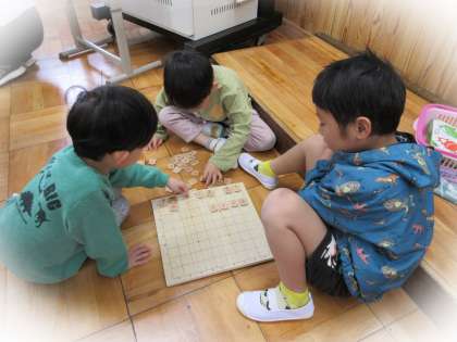 今日のなかよしタイムでは、しょうぎやかるた、こま、ブロック、お絵描きをしました。わくわくタイムでは、教室探検をして教室にもお家にある物が置いてあることに気付いていました。そのまま、運動場探検をしました。広い運動場でおにごっこをしたり、総合遊具の下をぐにゃぐにゃ通りぬけたりしました。外でおもいっきり体を動かしていました。