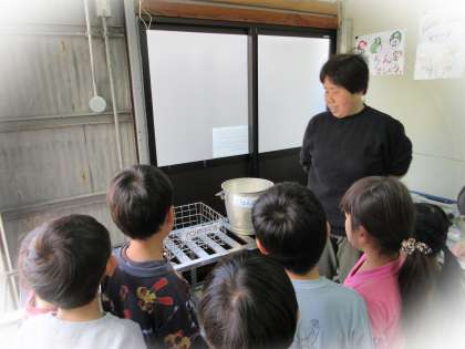 今日の「なかよしタイム」では、カードで遊んだり、絵をかいたり、みんなで手遊びしたりしました。「わくわくタイム」では、「学校探検がしたい!」という声から、給食室の探検をしました。給食室には、大きな鍋や大きな冷蔵庫があるのを見付けていました。「ぐんぐんタイム」では、国語の教科書の挿絵の中に、どんな生き物がいるのか、町の中に何があるのかをたくさん見付けて話してくれました。体育服に着替えて、身体計測を保健室で行いました。保健室にも不思議な物がたくさんありましたね。