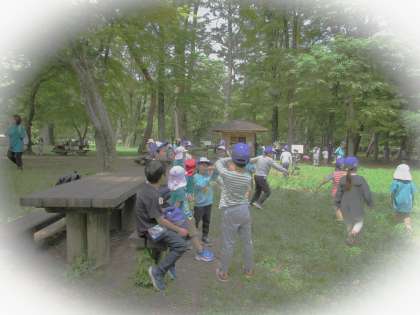 今日は、鶴山保育所さんと京極幼稚園さんと1・2年生が一緒に遊びました。だんだん、仲が深まってきましたね。