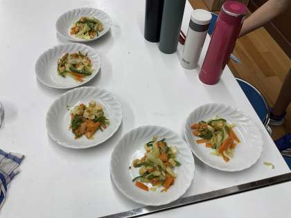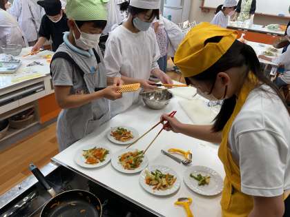 家庭科の学習で、「いろどり野菜いため」を作りました。
