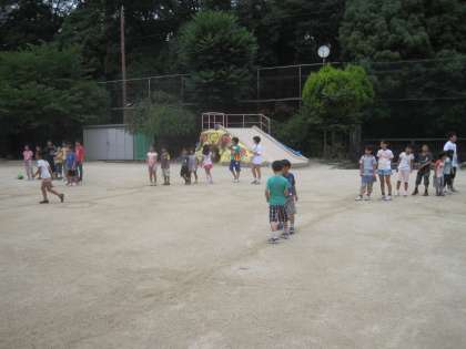先週から行間体育は縦割りグループで「ドン・ジャンケンホイ」を行っています。縦割りリーダーが中心となり,運動場に水でラインを引いて準備をしています。来週から毎週火曜日は縦割り掃除が始まります。