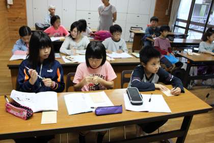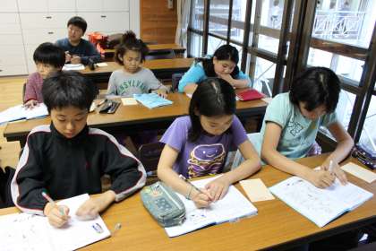 夕食の後,家の人に宛てた木のはがきに手紙を書きました。「家の人を感動させよう」をめあてに各自が書きました。木のはがきが届くのを楽しみにしてください。
