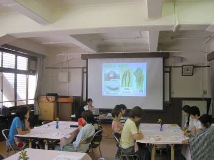 給食試食会が行われました。まず,栄養教諭が給食の献立や材料等についてスライドを見せながら説明を行いました。その後で,参加された保護者の方は子どもたちの給食の様子を見学していただきました。最後に保護者の方は子どもたちと同じ給食を試食していただきました。