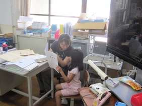 1年生は初めて「通知票」をもらいました。担任の先生から一人ずつ「がんばったところ」,「もう少し努力してほしいところ」などの話をして通知票を手渡しました。