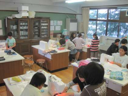 5年生は家庭科でナップザックを作製しています。ミシンの使い方に少しずつ慣れてきています。