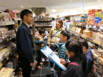 みどり学級と3年生がスーパーマーケットの見学に行きました。商品の陳列の仕方を調べたり,お店の人にインタビューしたりしました。