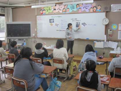 5年生の食育では栄養教諭が「だし」について指導しました。「だし」の決め手となるうまみ成分は日本人が発見したことや,「だし」を使うと塩分が少なくていい味がだせることなどを子どもたちは学習しました。