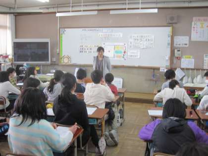 栄養教諭が食育指導を行いました。6年生はもう少しで中学校へ進学します。中学校ではお弁当を食べることがあり,栄養のバランスの良いお弁当について子どもたちは考えました。