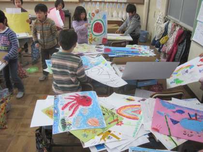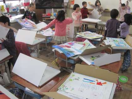 1年間に作った作品を整理しました。作品を入れる紙の箱にもそれぞれ絵を描きとても素敵な作品箱を作りました。