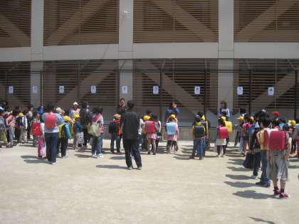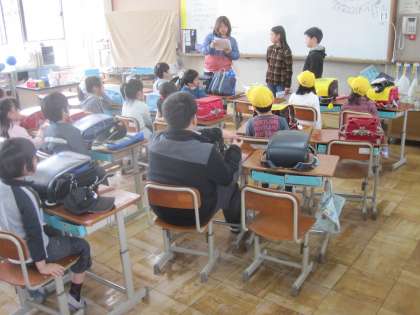 4校時に町別児童集会を行いました。入学した新1年生も入って,あらためて安全な登下校ができるように話合いをしました。町別児童集会終了後に運動場に登校班ごとに並び,集団下校をしました。