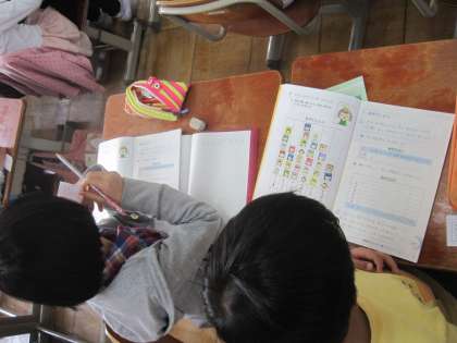 昨日,配布された教科書を使って算数の授業をしました。子どもたちは集中して学習に取り組みました。