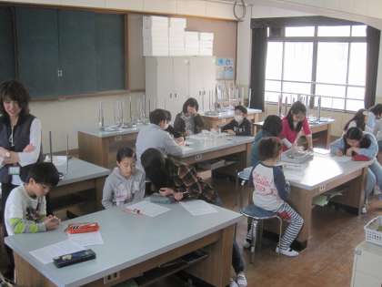 毎週木曜日に理科スクールサポーターが6年生に理科の指導をしています。今日は物の燃え方について実験を行いました。