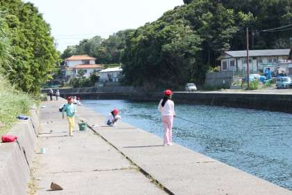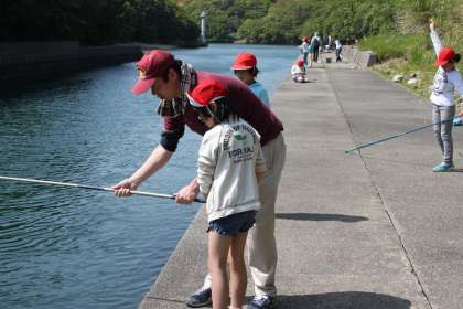 2日目の午後は釣りをしました。初めて釣りを経験する子どももいました。1人で3匹釣り上げている子どももいました。