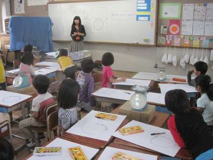 はかりの絵を描きました。子どもたちはめもりや針など細かなところに気をつけて丁寧に描きました。