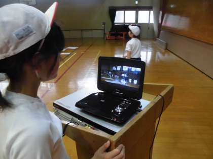 1つ目の写真は,DVDプレイヤーで技の様子を動画で確認しているところです。