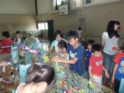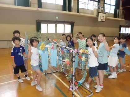 短冊には、子どもたち一人一人が願い事を書きました。飾りは、色紙などを使って、流れ星などの飾りを、それぞれのクラスで作りました。